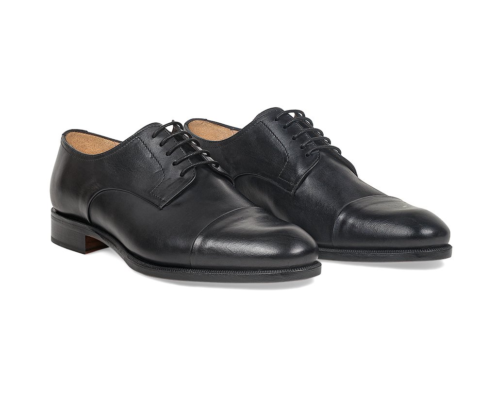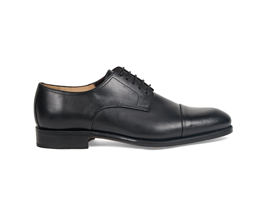 Derby 10307 Schnürschuh aus glattem schwarzem Leder mit EinsätzenDerby 10307 Schnürschuh aus glattem schwarzem Leder mit Einsätzen